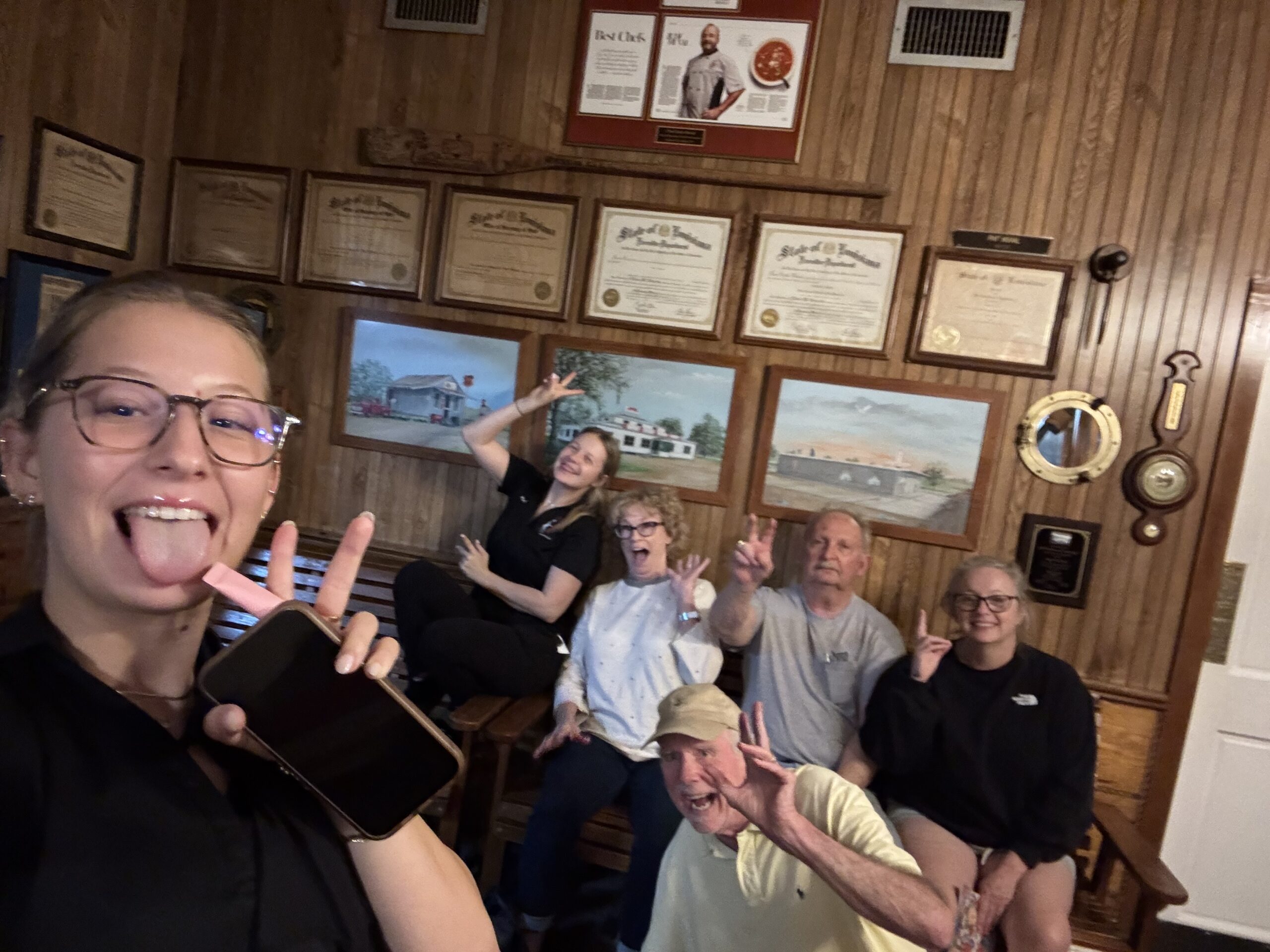 Dad traveled everywhere. So when he told us one of the most fun events he ever attended was a fais do-do, a Cajun dance party on a Saturday night deep in the bayous outside Lafayette, Louisiana, it stuck in my mind. I knew the infectiousness of Cajun music, having played with the Mudbugs, a band that reveled in honky swamp swing. Now, finally driving across that same bayou country on a weeknight fifty years after Dad’s visit, we were too early in the week for the fais do-do, but we found the food. Darkness overcame us as we rolled into Pat’s Fisherman’s Wharf in Henderson Louisiana. Pat’s is a family operation (photo). Been serving up Cajun seafood since before I was born. Gumbo and jambalaya, crabs and crawfish, alligator and shrimp, catfish, snapper and oysters, po boys and bread pudding. We were among the last patrons, something I’m always sensitive to, having served in a Cajun restaurant my ownself, and we only sat when they assured us they were gonna stay open for another hour. A good hour it was. We tried almost everything, including crawfish enchiladas. Throughout the meal we had a chance to visit with the family and the servers and the bussers and the folks at nearby tables, in the Cajun tradition of friendly neighbors never met a stranger. Peace out, and pass the hushpuppies.