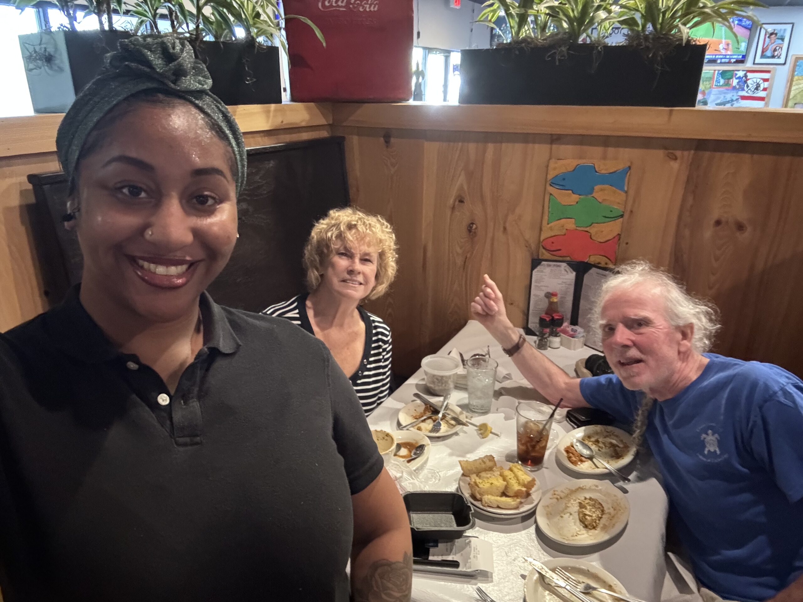 Zydeco salad, crabmeat eggplant and bayou rouge, catfish Acadian and fried green tomatoes.
