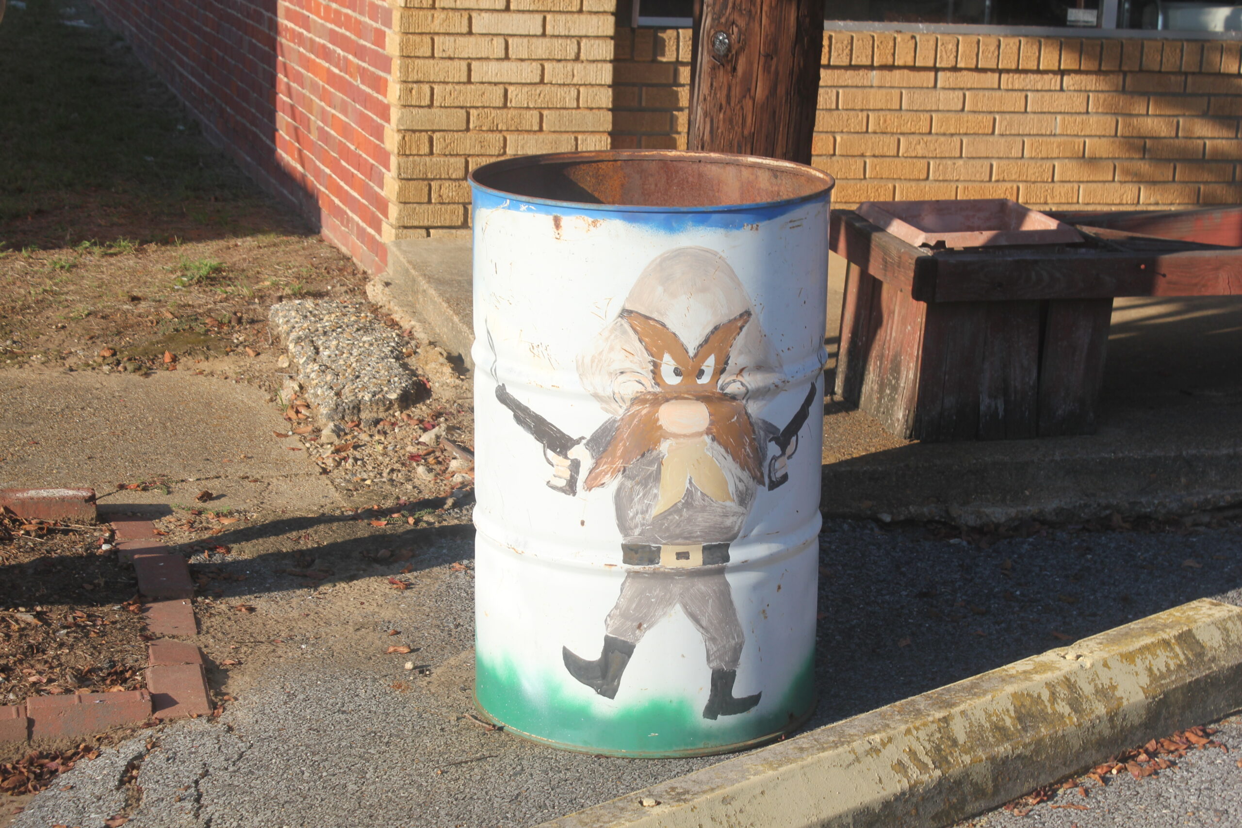 Stuffed to the gills we headed north to Bernice LA, home of Willis Reed and a sweet Yosemite Sam trash barrel. We made a deposit.
